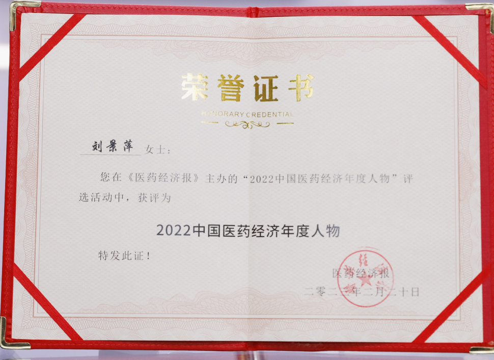 AG8旗舰厅药业集团董事长刘景萍当选“2022中国医药经济年度人物”