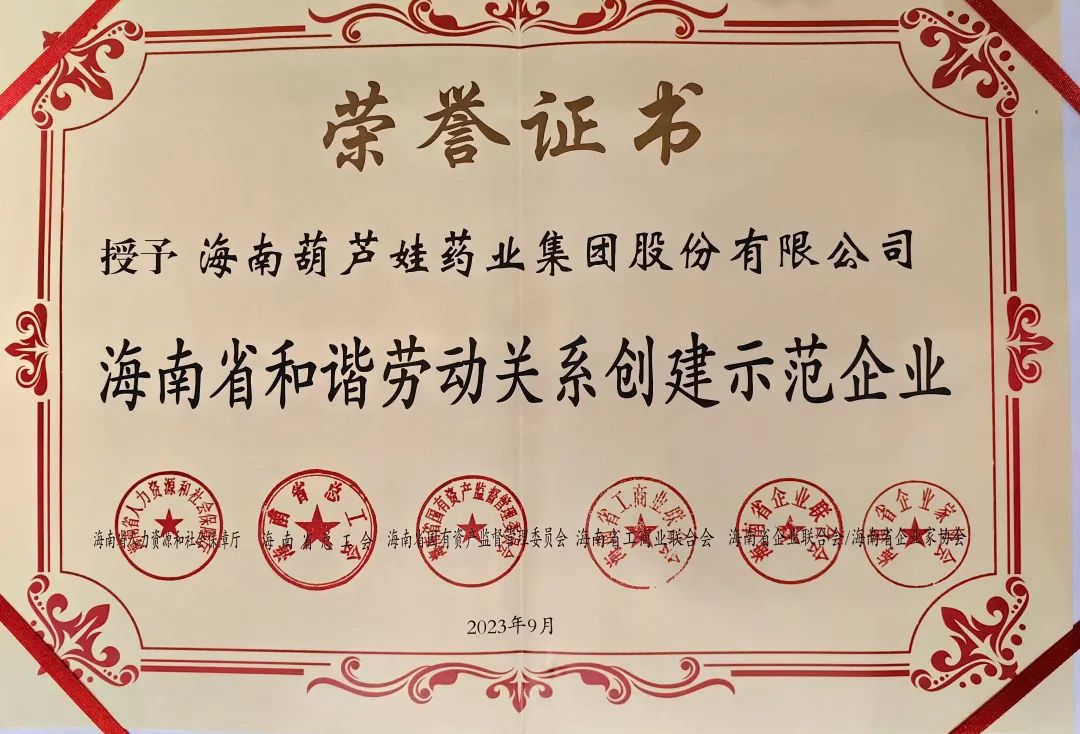 AG8旗舰厅药业集团获评“海南省和谐劳动关系创建示范企业”